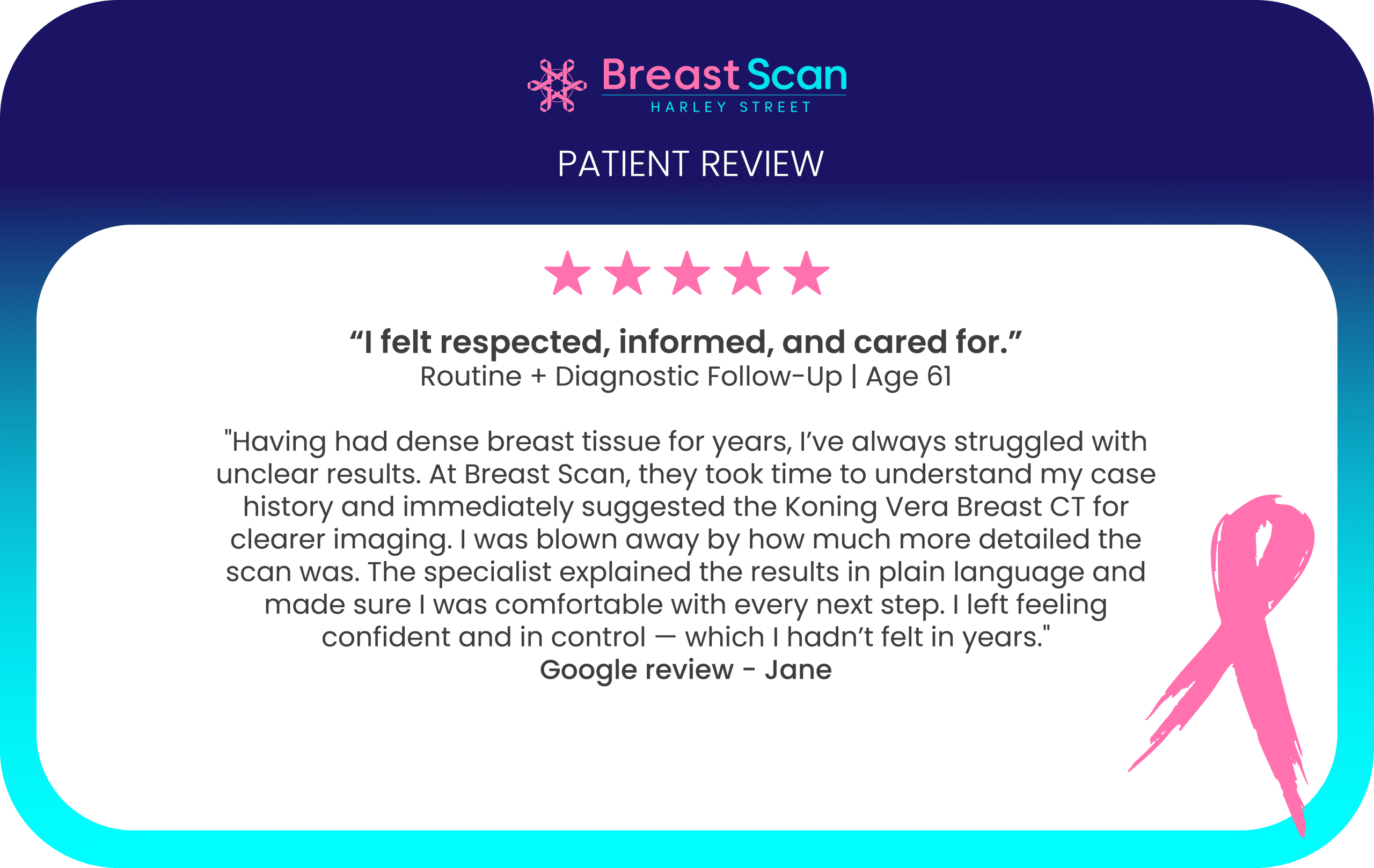 Read the genuine experiences of some of our patients and their outcomes from the care received at Breast Scan.