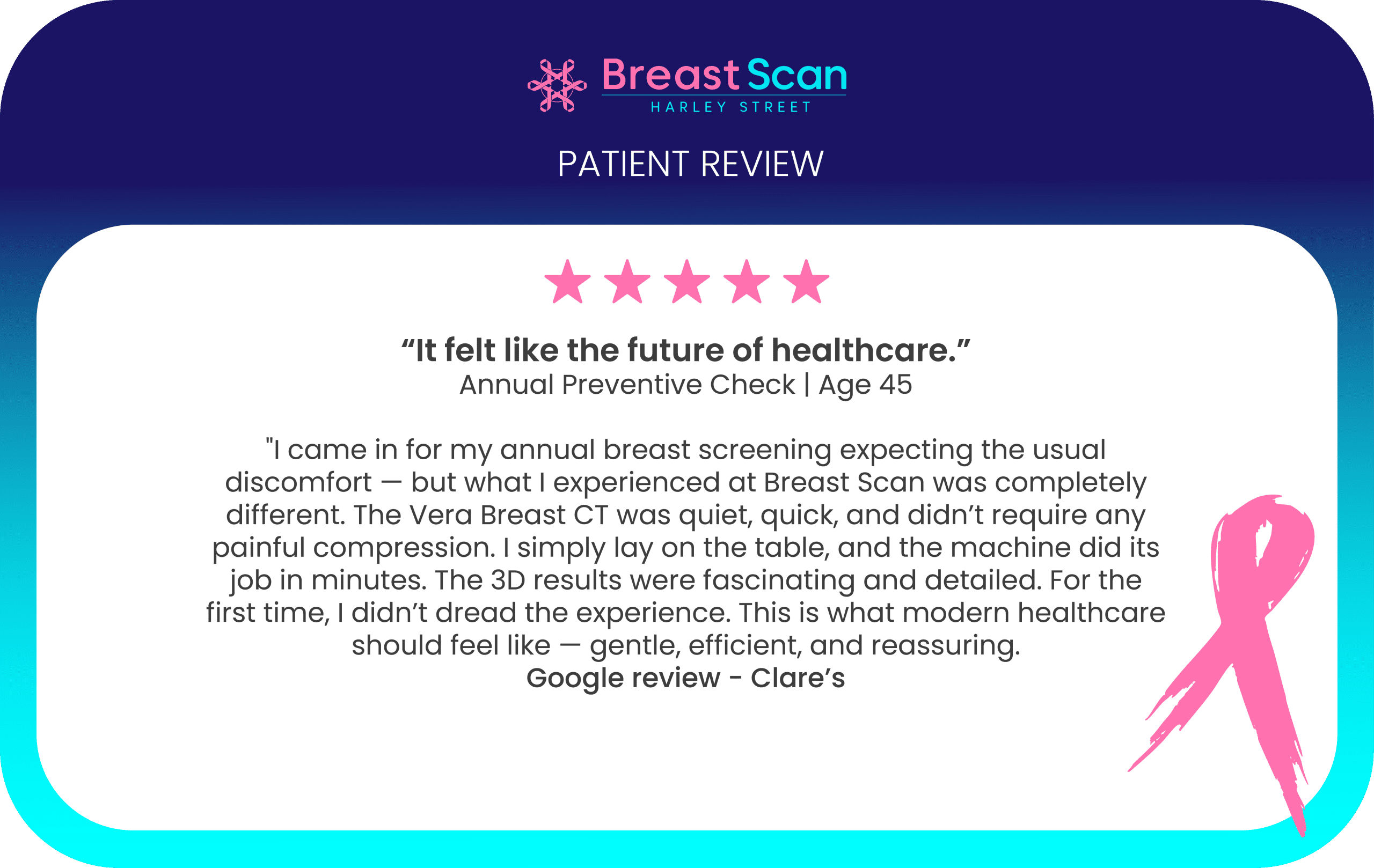 No compression, no pain, and incredibly fast. My results were ready the same day. I walked out not only reassured but deeply impressed by how dignified and smooth the whole process was.